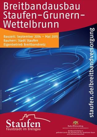 Nach Abschluss der durch das Land Baden-Württemberg bereits geförderten Baumaßnahmen in Grunern, Wettelbrunn und Staufen Süd hat die Stadt Staufen inzwischen weitere Förderbescheide erhalten. Bereits im Spätjahr 2016 wurde mit dem Glasfaserausbau im Gewerbegebiet Gaisgraben begonnen. Diese Maßnahme wird etwa 430.000 € kosten und durch das Ministerium für ländlichen Raum und Verbraucherschutz (MLR) mit 280.000 € gefördert.