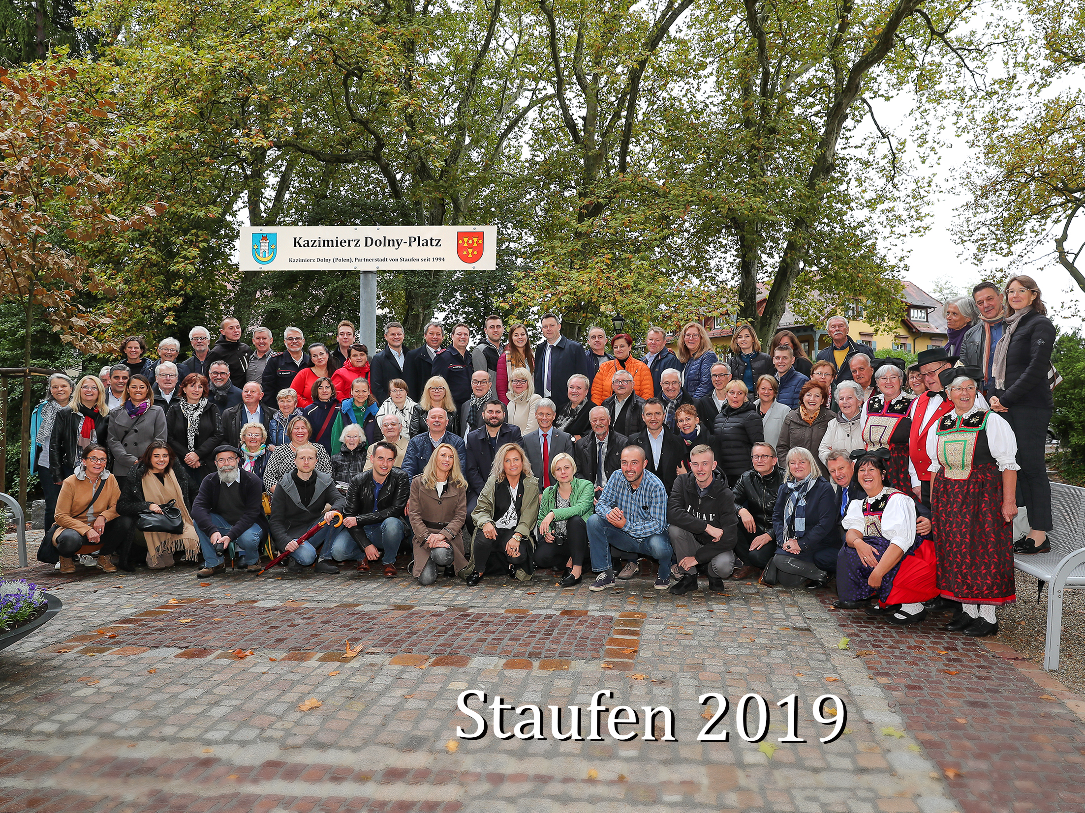 Vom 4. bis 7. Oktober besuchte Staufen eine knapp 50-köpfige Delegation aus Kazimierz Dolny anlässlich des 25-jährigen Jubiläums der Städtepartnerschaft. Mit dem neuen Bürgermeister Artur Pomianowski, der zum ersten Mal in Staufen war, hatten sich einige bekannte, aber erfreulicherweise auch viele neue und junge Gesichter aus Polen auf den langen Weg gemacht.