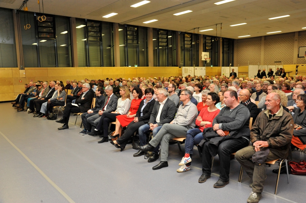 Über 300 Einwohnerinnen und Einwohner der Stadt Staufen konnte Bürgermeister Michael Benitz bei der diesjährigen Einwohnerversammlung am 21. März in der Belchenhalle begrüßen - ein Besucherrekord.