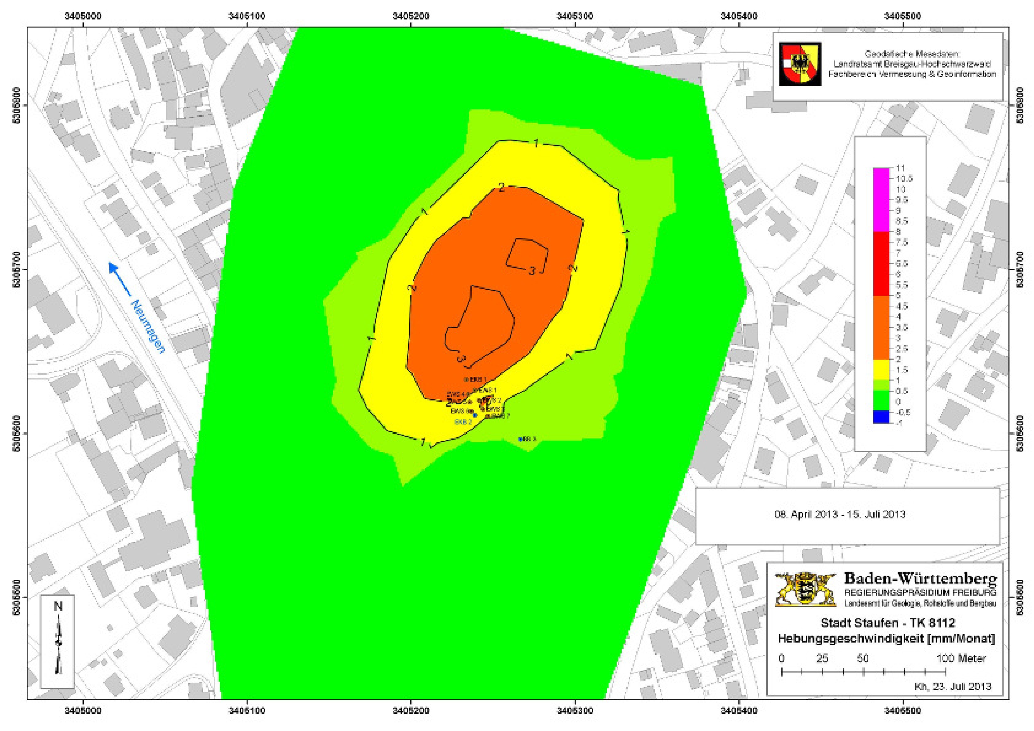 Sachstandsberichte des Landesamts für Geologie, Rohstoffe und Bergbau (LGRB) zur Erkundung und Sanierung des Schadensfalls Staufen sowie Hebungsfiguren