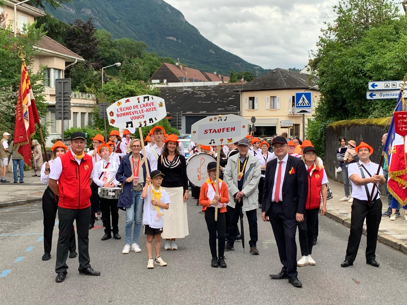 Seit 1963 besteht die Städtepartnerschaft zwischen Bonneville und Staufen. Das ganze Jahr über trafen sich verschiedene Gruppierungen aus Staufen und Bonneville zum Austausch, um das Jubiläumsjahr zu feiern. Der Höhepunkt dieser Feierlichkeiten bildete nun das Festwochenende am 30. September und 1. Oktober 2023 in Staufen.