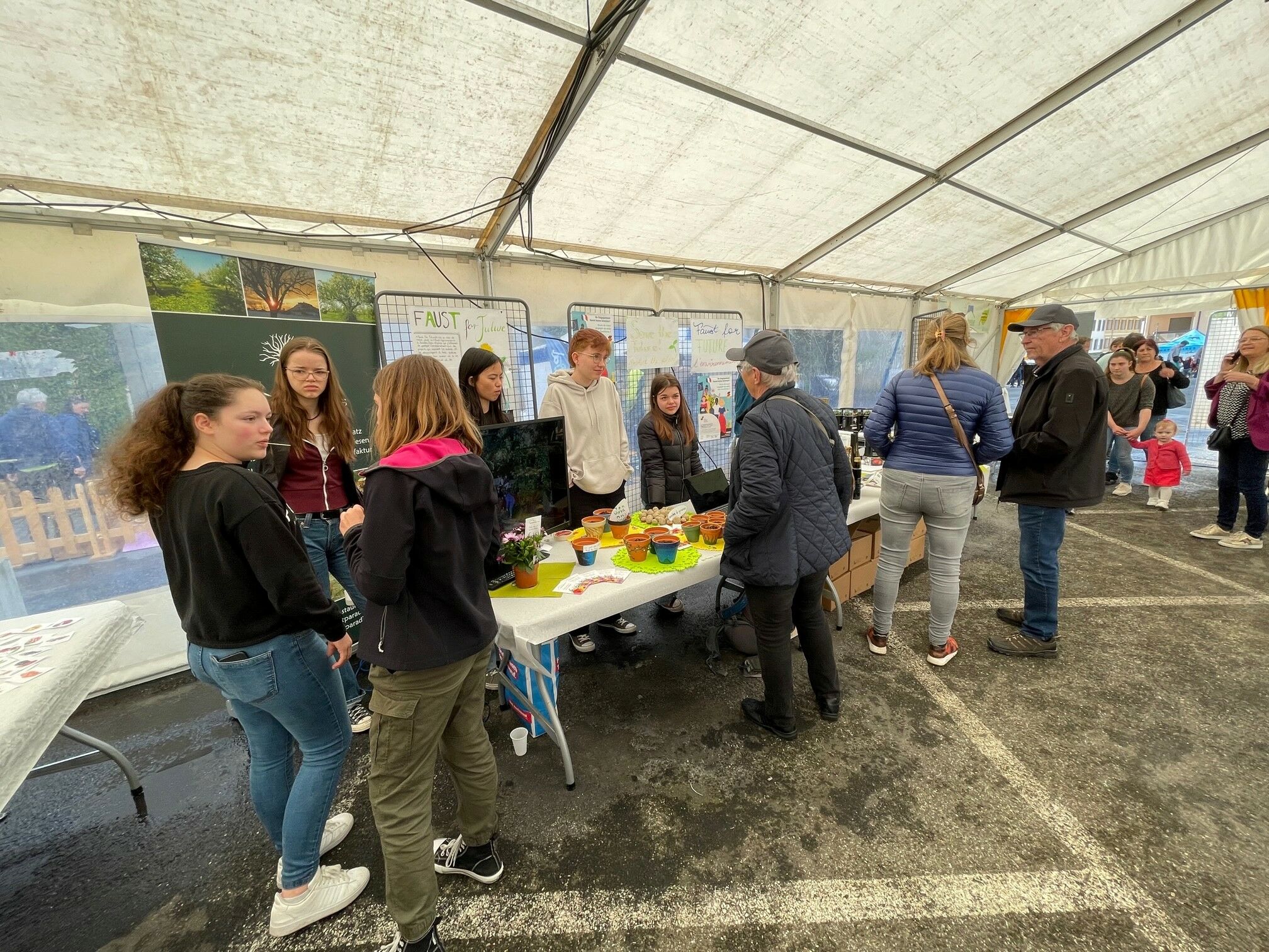 Die bereits seit 2019 bestehende, gesamtschulische Initiative “faust.for.future“ möchte mit ihrem Engagement das Bewusstsein dafür schärfen, dass jede/r in ihrem/seinem direkten Umfeld etwas für den Umwelt- und Klimaschutz bewegen kann. Dabei werden gemeinsam Projekte entwickelt und umgesetzt, an denen sich alle beteiligen können. Eines davon ist z. B. der Schulgarten des Faust-Gymnasiums, der mit viel Herzblut und Begeisterung von Schüler*innen, Eltern und Lehrer*innen gestaltet und gepflegt wird. Am Wochenende vom 21. bis 23. April reiste eine Delegation von sechs Schülerinnen (Junia Czibor, Lydia Kiefer, Elisaweta Kunz, Amelie Pfefferle, Leni Seywald und Miriam Süße) sowie Patrick Weichert (Vorsitzender des Partnerschaftsausschusses Bonneville), Monia Mainberger und Jutta Zürn (beide Französischlehrerinnen am Faust-Gymnasium) nach Bonneville. Die Schülerinnen präsentierten an einem Messestand die Projekte und Inhalte der „faust.for.future“-AG in französischer Sprache und haben die Besucher*innen des „Journée nature“ mit ihrem freundlichen und kompetenten Auftreten begeistert. Géraldine Coffy, Bürgermeisterstellvertreterin und zuständig für die Partnerschaft mit Staufen sowie Stéphane Valli, Bürgermeister von Bonneville, haben die Schülergruppe herzlich empfangen und waren von dem Engagement sehr beeindruckt.