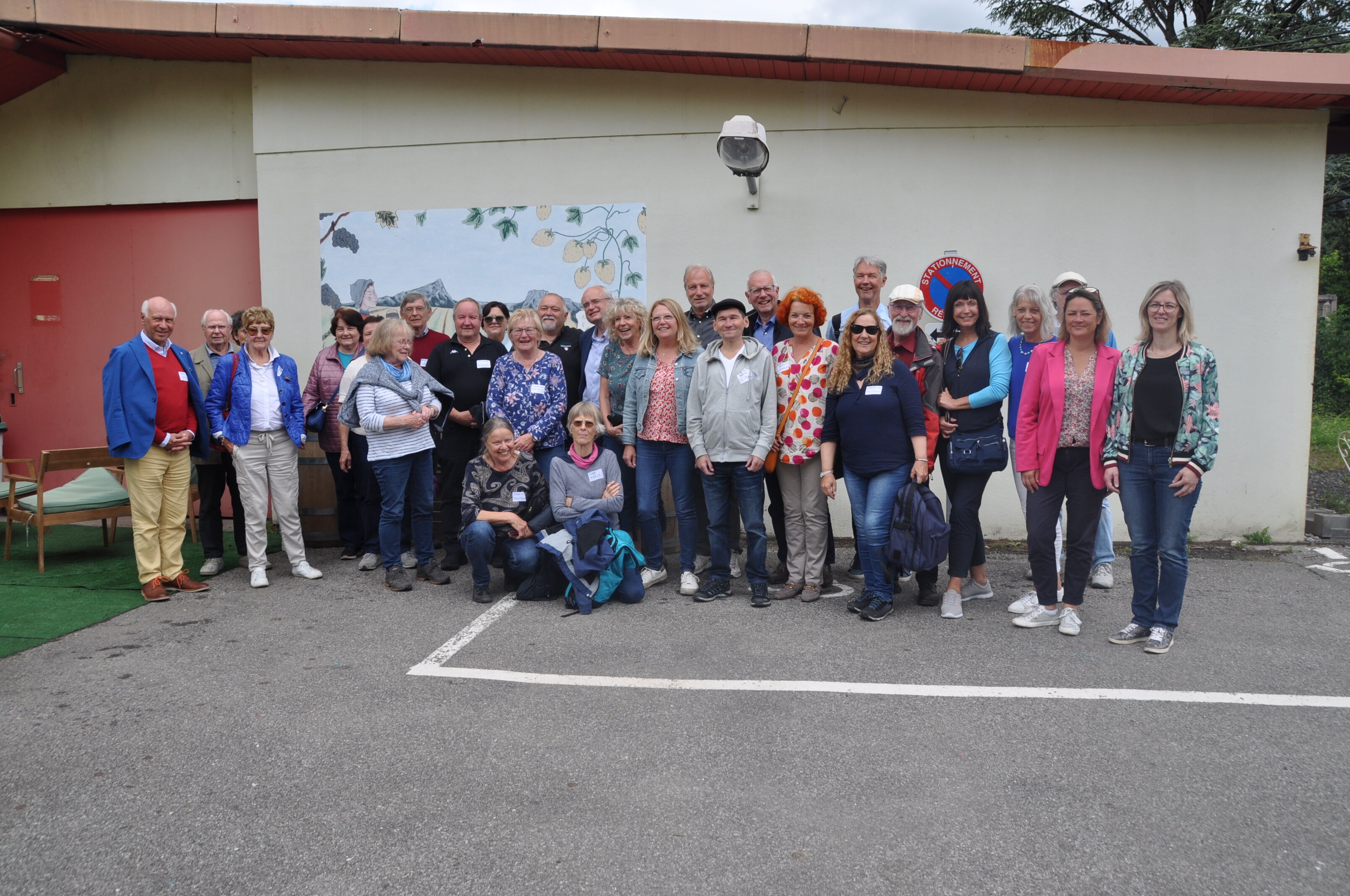 Der Himmel muss ein Schotte sein. Am Tag nach der 1:5-Niederlage gegen die DFB-Elf weinte er so stark, dass bei Abfahrt Regenschirm und Anorak angesagt waren. Doch schon während der Fahrt durch die Schweiz wurde es heller, und Bonneville begrüßte die deutschen Gäste mit Sonnenschein und warmen Temperaturen. Erste Station war zunächst das Nachbardorf Ayse, Standort des Winzerbetriebs der Familie Montessuit. Hier werden von Fabrice und Nicolas Montessuit in dritter Generation vorwiegend in Handarbeit Weiß- und Rotweine sowie ein Sekt produziert, den die Reisenden nach langer Fahrt dankbar verkosteten und sich dabei über die besondere Produktionsweise der drei Schaumweine informierten. Für den großen Hunger zur Mittagszeit war dann im Saal des Cateringunternehmens Mieusset ein köstliches Büffet aufgebaut, und es gab ausführlich Zeit für Gespräche untereinander. Auch Bürgermeister Stéphane Valli schaute vorbei und kam mit der Gruppe ins Gespräch.